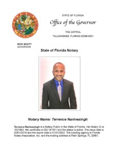 Terrence Narinesingh Florida Notary Commission Detail Office of the Governor Rick Scott