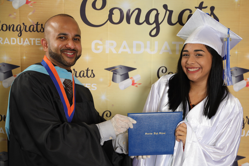 Picture 28 a – Dr. Terrence Narinesingh, Ph.D. at Broward County Public Schools Graduation with graduating senior Marilyn Alexia Rodriguez