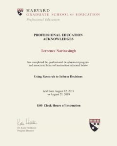 Home 6 Harvard University Certificate_2019_Dr Terrence Narinesingh_Using Research